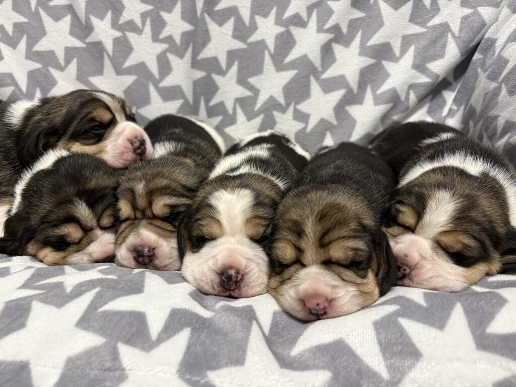 i tentokrát se narodilo šest štěňátek s rozdělením tři na tři 🙂